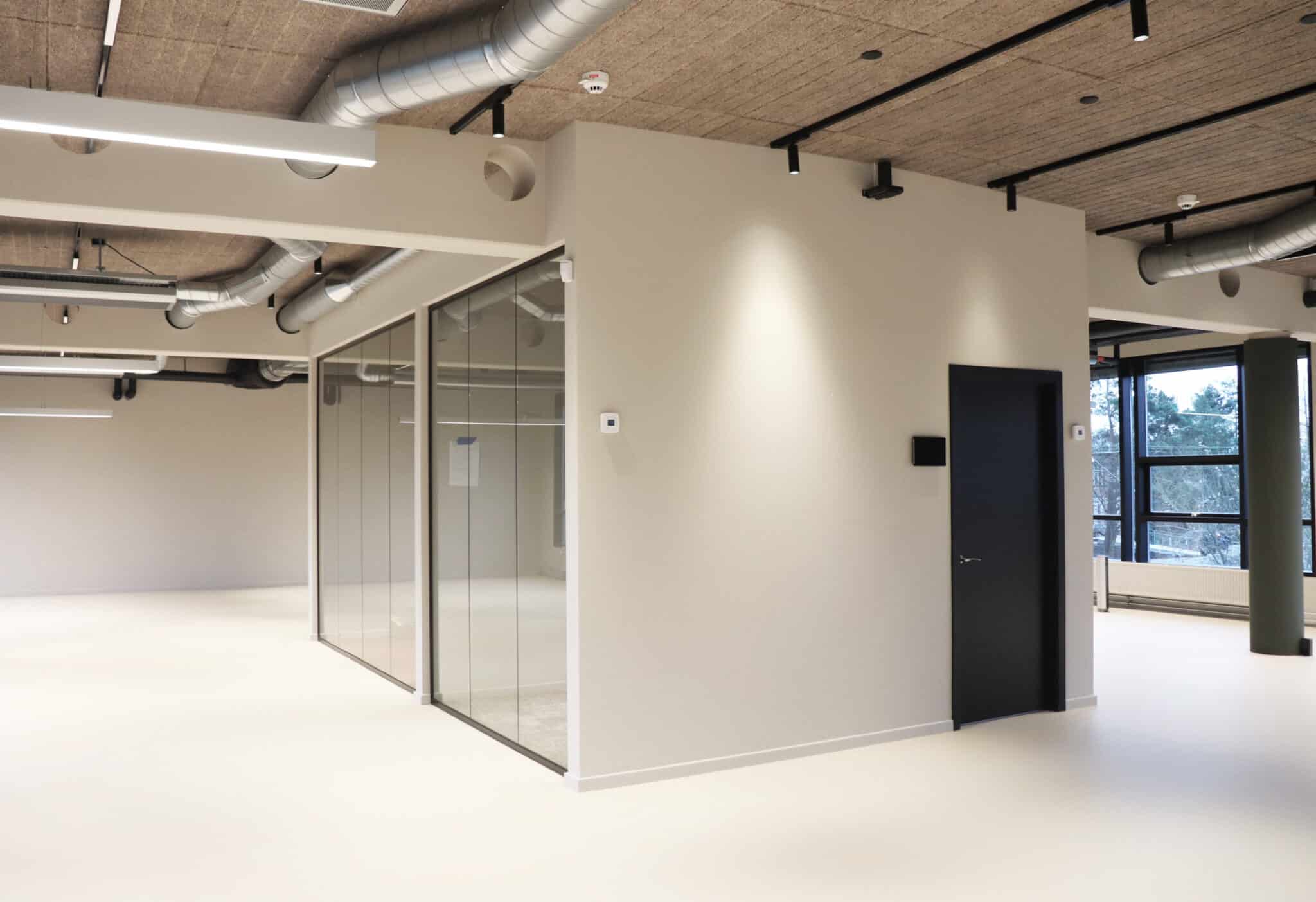 Vi har blandt andet lavet akustiske lofter, PU gulve, Genopfriskning af trapper og etablering af små glas mødelokaler.